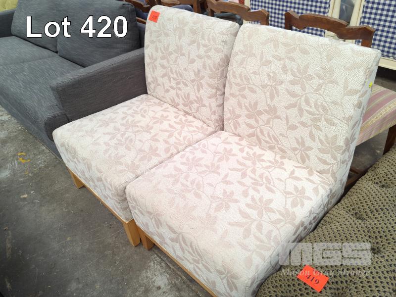 PAIR BEIGE FABRIC UPHOLSTERED OCCASIONAL CHAIRS