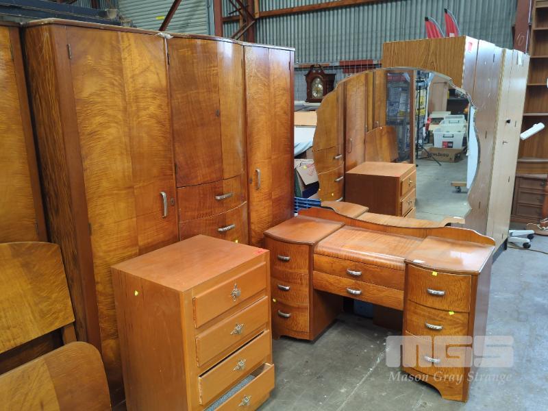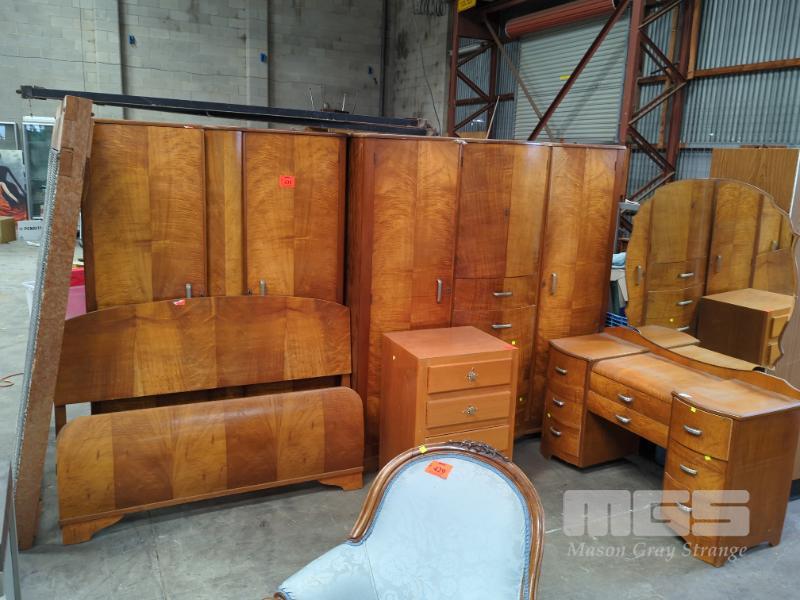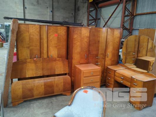 BEDROOM SUITE, WARDROBE, ROBE, MIRROR BACK DRESSER, BEDSIDE & BED