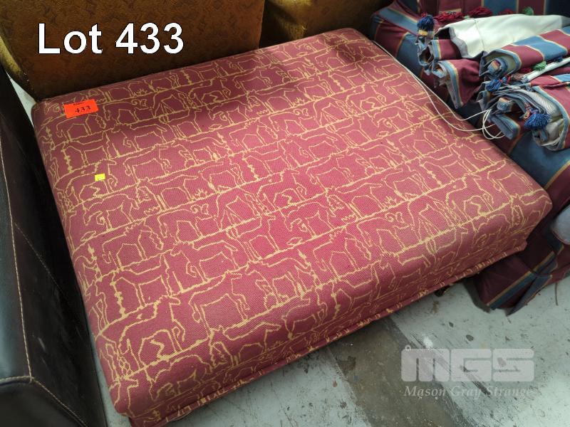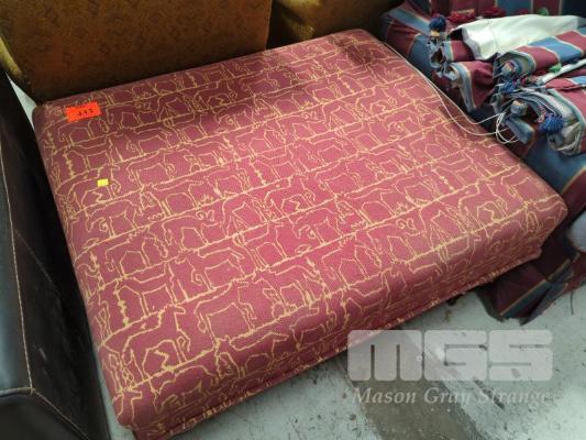 BURGUNDY FABRIC UPHOLSTERED MOBILE OTTOMAN