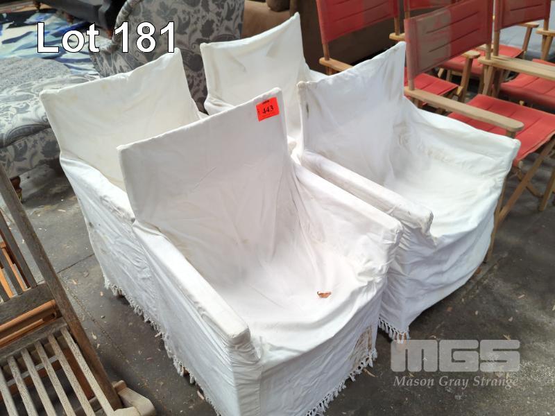 SET 4 BEIGE DIRECTORS CHAIRS WITH CHAIR COVERS