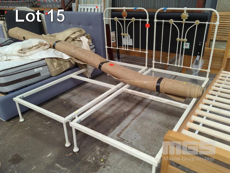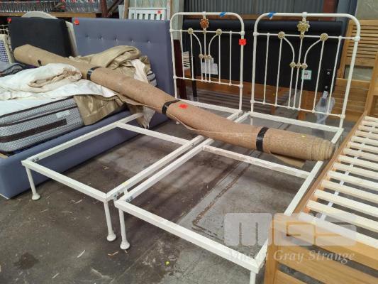 PAIR SINGLE BEDS WITH CAST IRON BEDHEADS