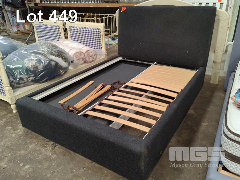 DOUBLE BED WITH DARK GREY FABRIC UPHOLSTERED BED BASE, NO MATTRESS WITH TRUNDLE BED & MATTRESS UNDERSTORAGE