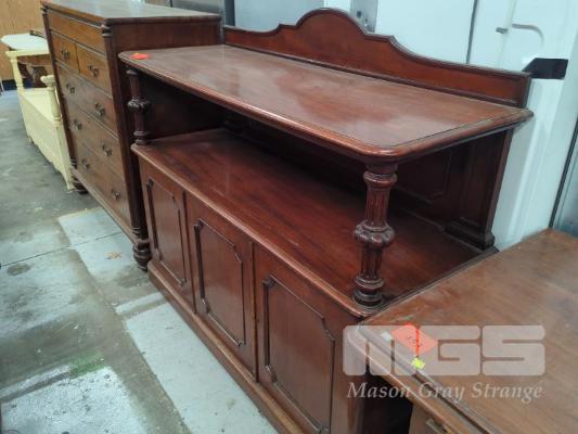 MAHOGANY SIDEBOARD, 3 DOOR UNDERSTORAGE, 2 TIER ABOVE STORAGE