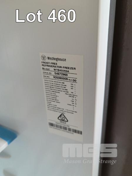 WESTINGHOUSE 2 DOOR REFRIGERATOR FREEZER MOD: WTB4604SA 460 LITRE