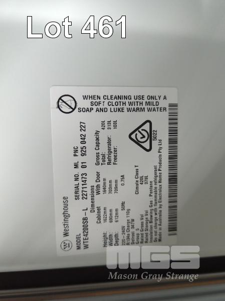 WESTINGHOUSE 2 DOOR REFRIGERATOR FREEZER MOD: WTE4200SB-L 420 LITRE