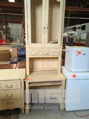 WHITEWASH DESK/WALL UNIT, PULL OUT KEYBOARD DRAWER, 2 DOOR, 3 DRAWER ABOVE STORAGE