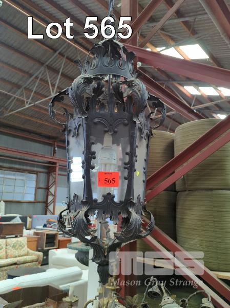 BLACK PRESSED TIN & GLASS PENDANT LIGHT