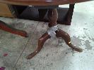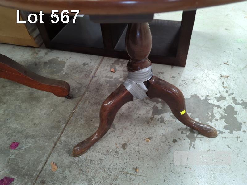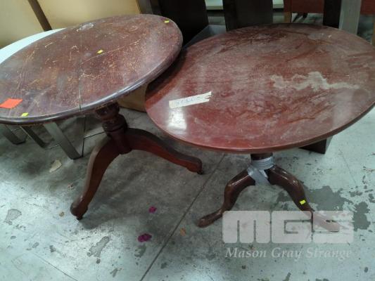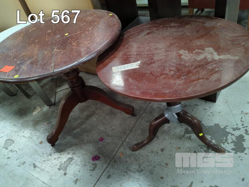 2 x MAHOGANY CIRCULAR TABLES, 1 x PEDESTAL BASE ALL FAULTS