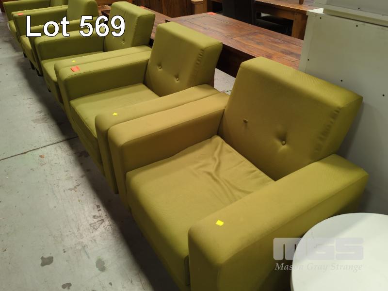 3 x GREEN FABRIC UPHOLSTERED VISITORS ARM CHAIRS