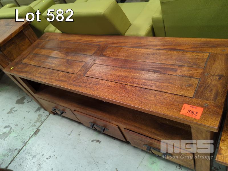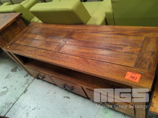 RUSTIC LOOK TIMBER LOWLINE ENTERTAINMENT UNIT WITH 3 DRAWER UNDERSTORAGE