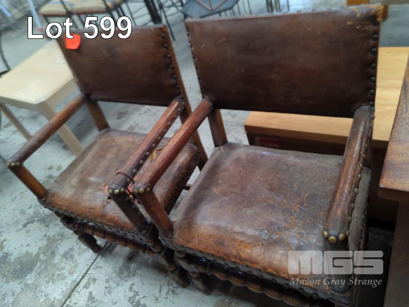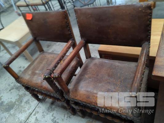 MEDIEVAL LEATHER BOUND ARM CHAIRS