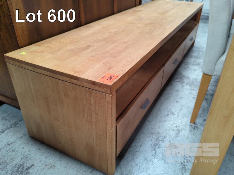 RUBBERWOOD LOWLINE ENTERTAINMENT UNIT WITH 3 DRAWER UNDERSTORAGE