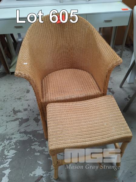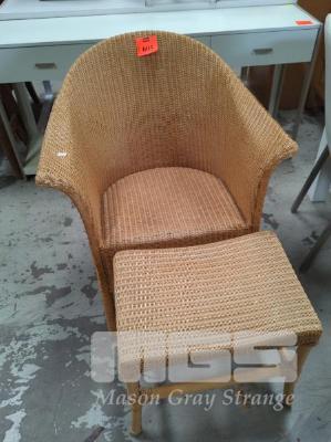 WOVEN CANE TUB CHAIR & FOOT STOOL