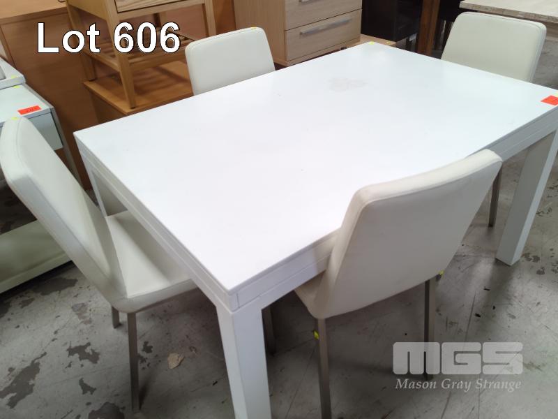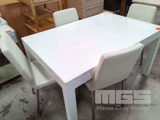WHITE 5 PIECE DINING SUITE, RECTANGULAR TABLE & 4 x CHAIRS