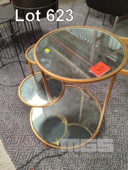 WROUGHT IRON MULTI TIER OCCASIONAL TABLE