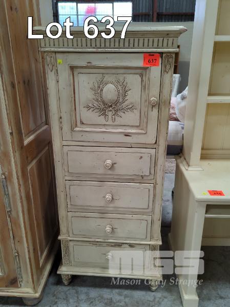 RUSTIC PAINTED CABINET WITH SINGLE DOOR CABINET STORAGE & 4 DRAWER UNDERSTORAGE