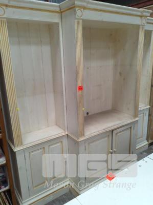 BEIGE PAINTED WALL UNIT 3 PIECE GREEK STYLE SHELF ABOVE STORAGE WITH 2 & SINGLE DOOR UNDERSTORAGE