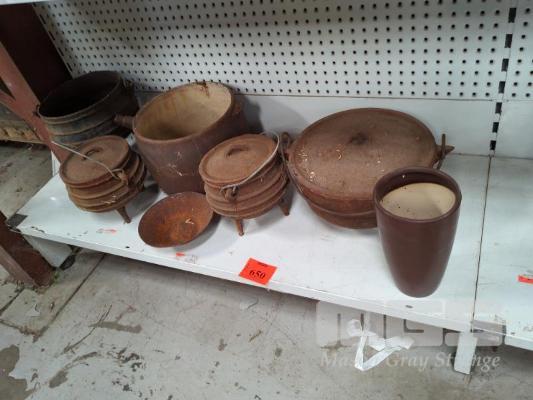 ASSORTED CAULDRONS & CAMP OVEN