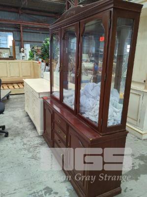 DISPLAY CABINET, MAHOGANY STAINED, 5 DOOR, 4 DRAWER, MIRROR BACKED PANEL