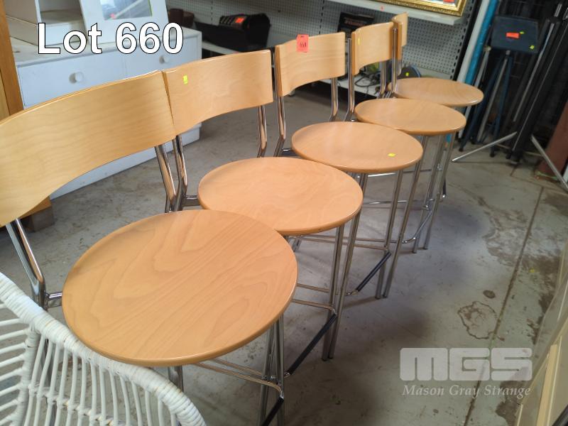 5 x BEECHWOOD STOOLS WITH CHROME FRAMES