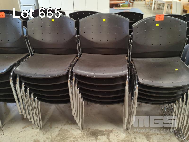 18 x BLACK MOULDED PLASTIC STACKABLE CONFERENCE CHAIRS, CHROME FRAME, INTERLOCKABLE