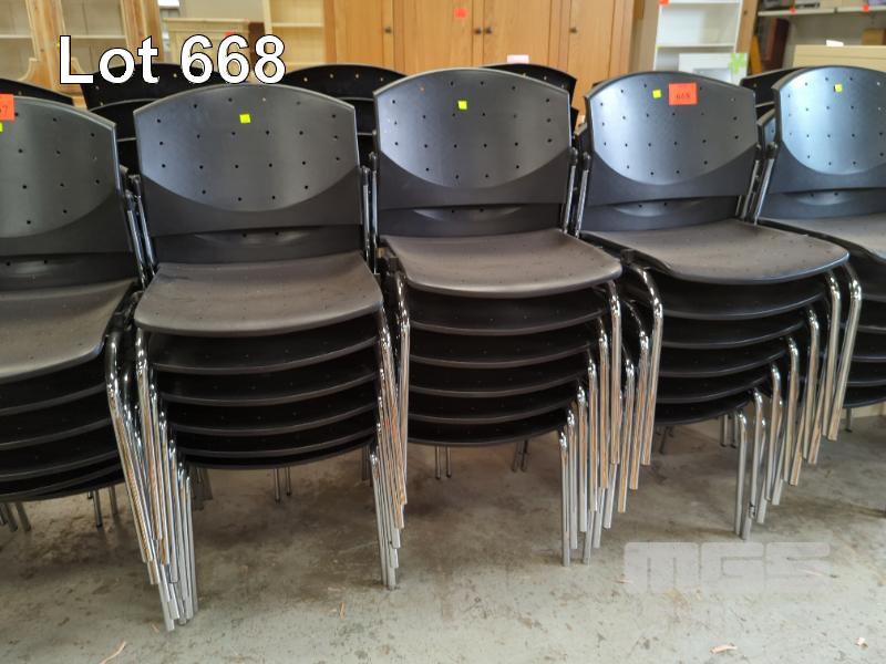 18 x BLACK MOULDED PLASTIC STACKABLE CONFERENCE CHAIRS, CHROME FRAME, INTERLOCKABLE