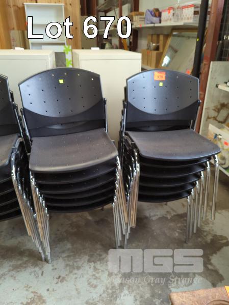 12 x BLACK MOULDED PLASTIC STACKABLE CONFERENCE CHAIRS, CHROME FRAME, INTERLOCKABLE