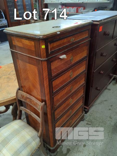 MAHOGANY VENEERED MARBLE TOPPED SECRETAIRE