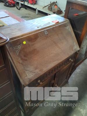 DECORATIVE CARVED FALL FRONT WRITING BUREAU, SINGLE INTERNAL DRAWER, 2 DOOR SINGLE DRAWER UNDERSTORAGE