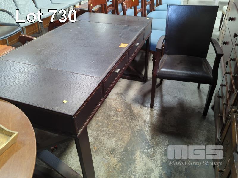 TIMBER AND LEATHER 3-DRAWER DESK WITH MATCHING CHAIR