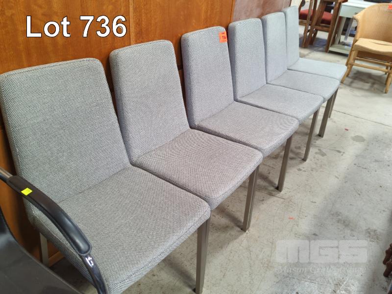 6 X GREY FABRIC UPHOLSTERED DINING CHAIRS