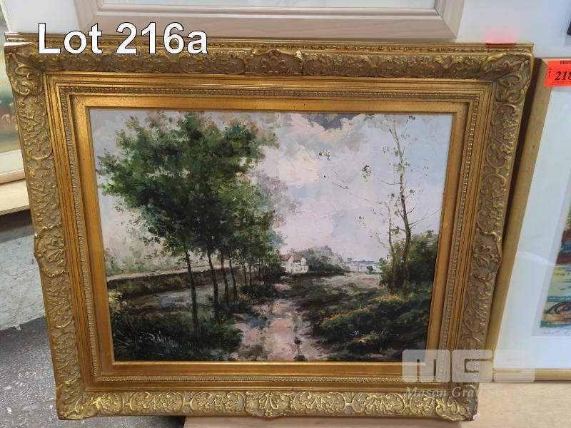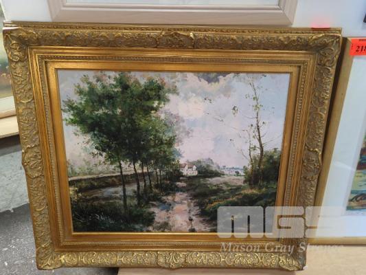 GILT FRAMED OIL ON CANVAS FRENCH COUNTRY SCENE. 103 X 87 CM.