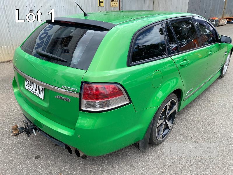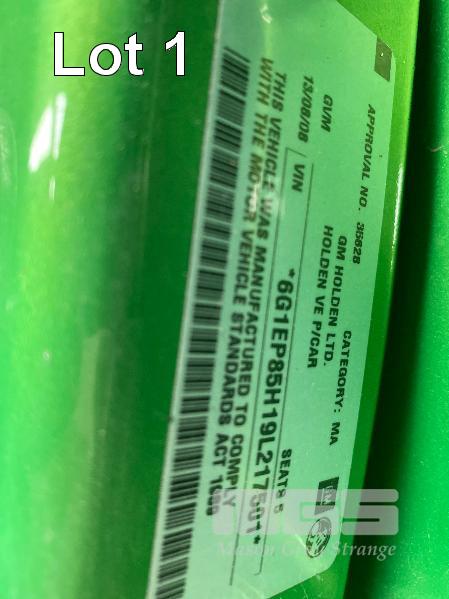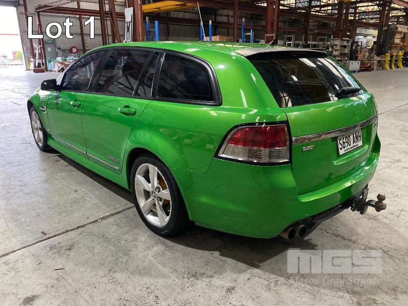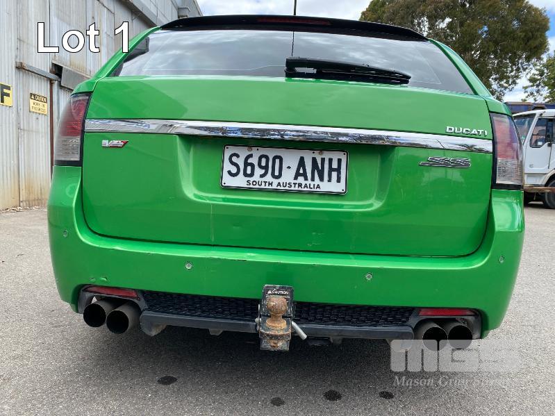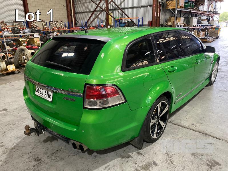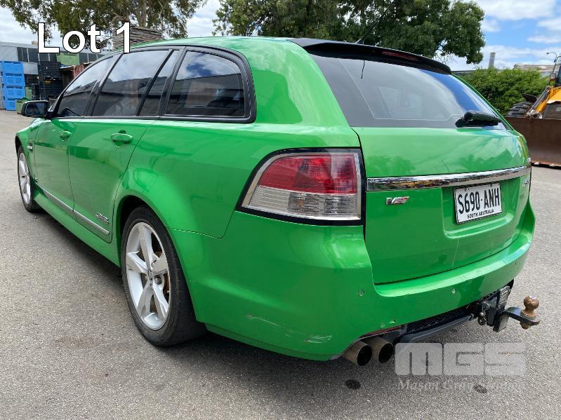 2008 HOLDEN VE COMMODORE SS STATION WAGON REG: S690 ANH (SA) VIN: 6G1EP85H19L217501 ENG: DBF081300756 ODO: 178,236kms SHOWING V8, 6 LITRE, 6 SPEED MANUAL TRANSMISSION, PETROL, GREEN DUCO, 4 DOORS, 5 SEAT, ABS, AIR BAG, AIR CON, ALLOY WHEELS, BLUETOOTH, CD PLAYER, CENTRAL LOCKING, CRUISE CONTROL, IMMOBILISER, LEATHER TRIM, POWER STEERING, POWER WINDOWS, SPARE WHEEL, SPOT LIGHTS, TOW BAR, TRACTION CONTROL, 2 x FOLDING SEATS, SUIT REAR KEY #1 (WITH PAPERS, WITH 2 KEY/S, WITH OWNER'S MANUAL)
