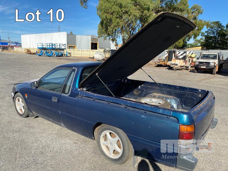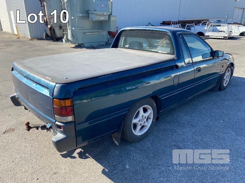 1996 HOLDEN COMMODORE VS UTILITY REG: N/A VIN: 6H8VSK80HTL932908 3.8 LITRE V6, AUTOMATIC TRANSMISSION, EFI, METALLIC GREEN/BLUE DUCO, 2 DOORS, 2 SEAT, AIR BAG, AIR CON, ALLOY WHEELS, CENTRAL LOCKING, CRUISE CONTROL, IMMOBILISER, POWER STEERING, SPARE WHEEL, TOW BAR, OD: 7,050 SHOWING (NOT CORRECT) HARD TOP UTE COVER, GAS LIFT KEY#11 (NO PAPERS, WITH 1 KEY/S) CONDITION: BONNET - MINOR FRONT END DAMAGE - ENGINE NOISE
