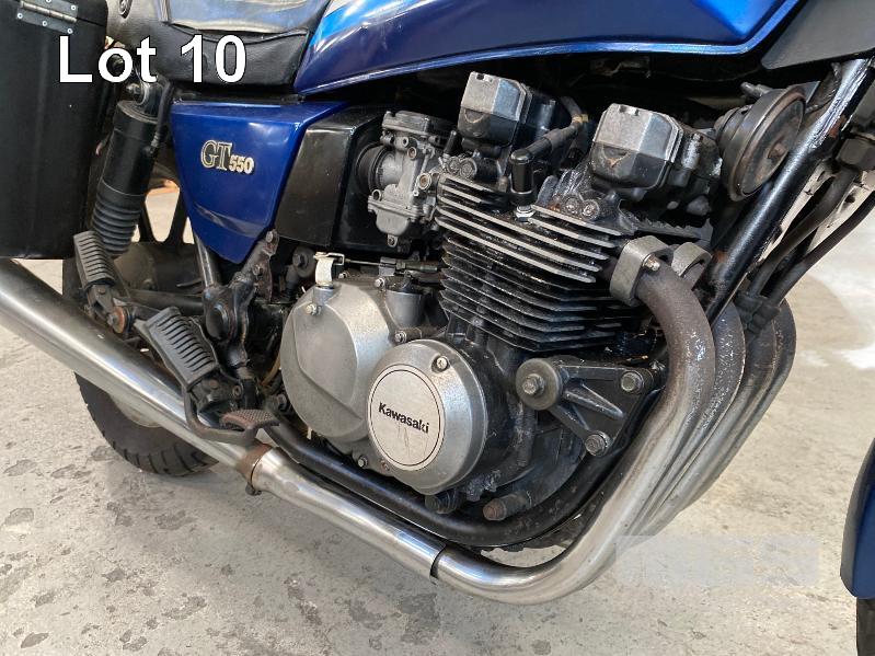 1987 KAWASAKI GT550 (KX550G) MOTORCYCLE REG: THD 462 (SA) VIN: KZ550G004700 ENG: KZ550FED10G95 KMS: 75,171kms SHOWING ENG CAP: 550cc 4 STROKE, 6 SPEED, FITTED WITH 2 x SIDE MOUNT PANNERIS & REAR CARRY RACK BLUE DUCO WITH REGISTRATION PAPERS KEY #59