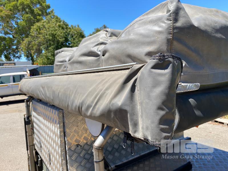 2017 CUSTOM SINGLE AXLE CAMPER TRAILER REG: S404 TFW VIN / CHASSIS: 6T9T2000SH0K9X008 FITTED WITH TOM ROOFTOP FOLD DOWN TENT SIDE & REAR AWNINGS, PULL OUT KITCHEN BATTERY POWER, SOLAR PANEL & MAINS CHARGING WATER TANK, LED LIGHTS, LOTS OF STORAGE ELECTRIC BRAKES, BALL HITCH, SPARE WHEEL REAR STABILISERS WITH KEYS KEY #40 (WITH PAPERS)