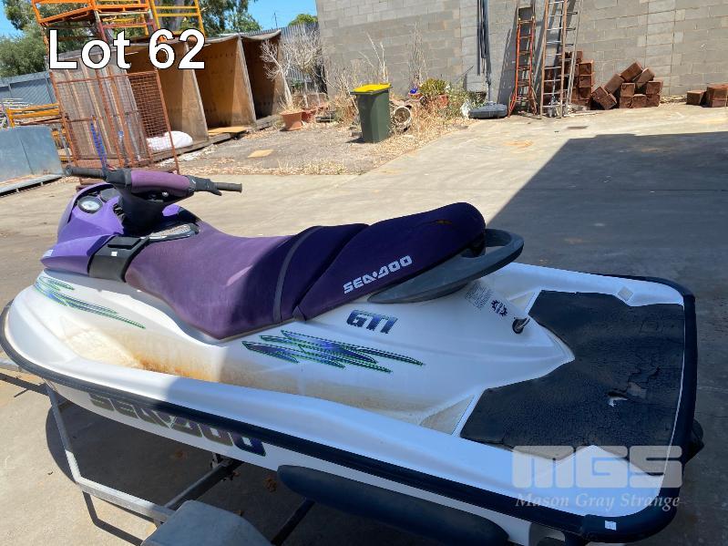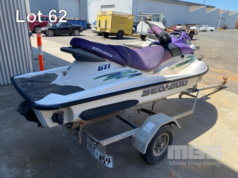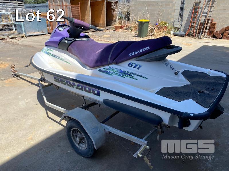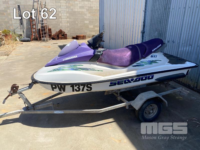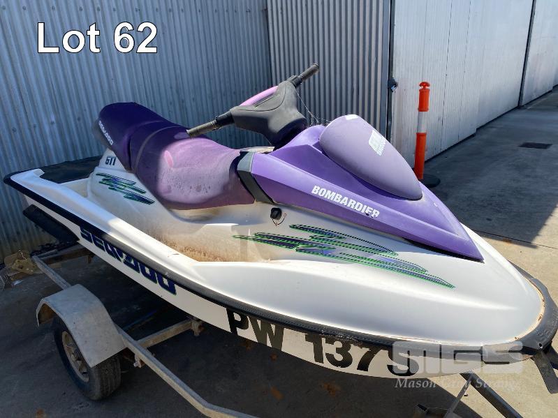 JET SKI, SEADOO BOMBARDIER GTI HIN: AU-TSA010291CK3 MARINE REG: PW137S ROTAX TWIN CYLINDER PETROL ENGINE ON 1995 SINGLE AXLE TRAILER REG: YET 459 (SA) (NO PAPERS) VIN: RW121095005543 GALV STEEL, BALL HITCH, HAND WINCH