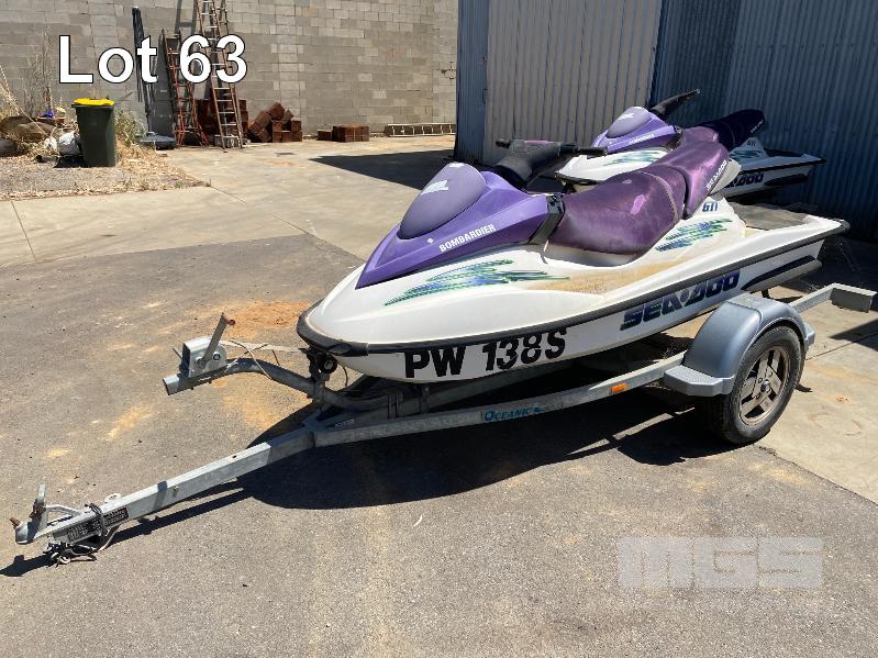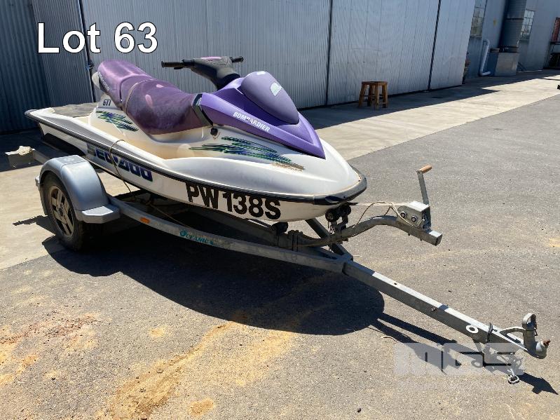 JET SKI, SEADOO BOMBARDIER GTI HIN: AU-TSA009300CK3 MARINE REG: PW138S ROTAX TWIN CYLINDER PETROL ENGINE ALL FAULTS ON 2002 SINGLE AXLE TRAILER REG: N/A VIN: 6T9T22ABM20BLV511 GALV STEEL, BALL HITCH, HAND WINCH
