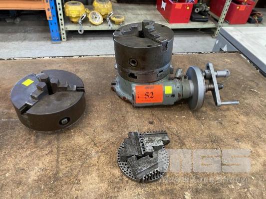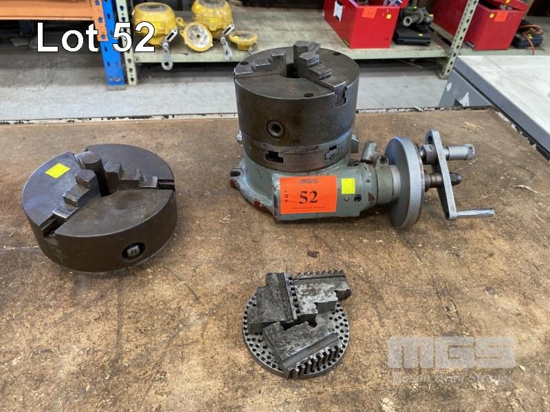 INDEXING HEAD WITH 2 x 3 JAW CHUCKS, 155mm DIAMETER