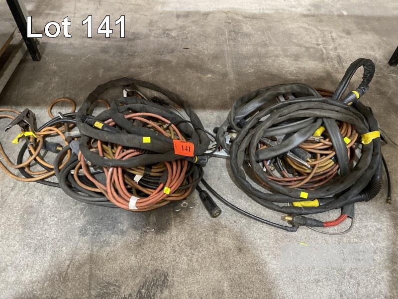 ASSORTED WELDING EARTH LEADS & TIG HAND PIECES & CABLES,