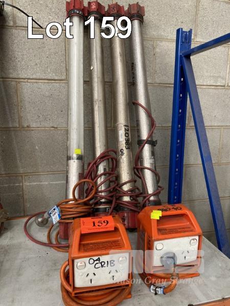 2 x RCD PROTECTED POWER BOXES, BODYGUARD & 4 x BURN BRITE WORK LIGHTS, WEATHER PROOF