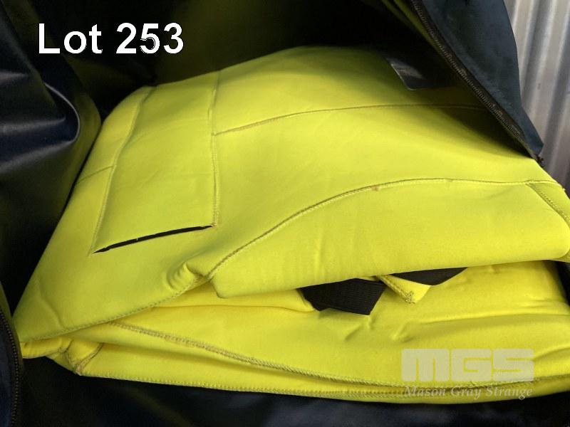 4 x VIKING SOLAS IMMERSION SUITS MOD: PS2004 DOM: 2016 SIZE: UNIVERSAL HEIGHT: 170-210cm WEIGHT: 80-160kg HIGH VISIBILITY YELLOW REFLECTIVE TAPE FOR HIGH VISIBILITY IN THE DARK THERMAL PROTECTION IN COLD WINTER IN CARRY BAG