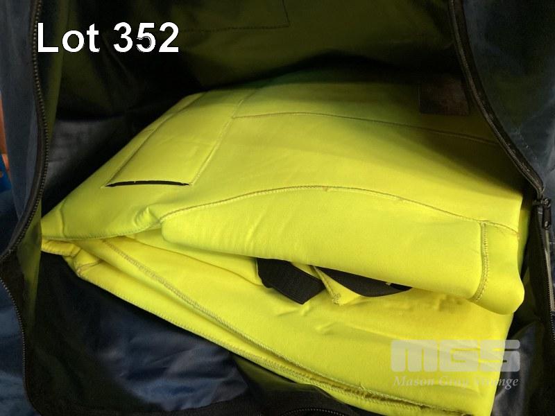 4 x VIKING SOLAS IMMERSION SUITS MOD: PS2004 DOM: 2016 SIZE: UNIVERSAL HEIGHT: 170-210cm WEIGHT: 80-160kg HIGH VISIBILITY YELLOW REFLECTIVE TAPE FOR HIGH VISIBILITY IN THE DARK THERMAL PROTECTION IN COLD WINTER IN CARRY BAG