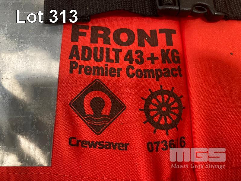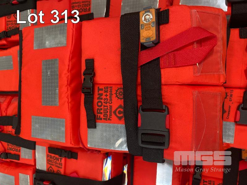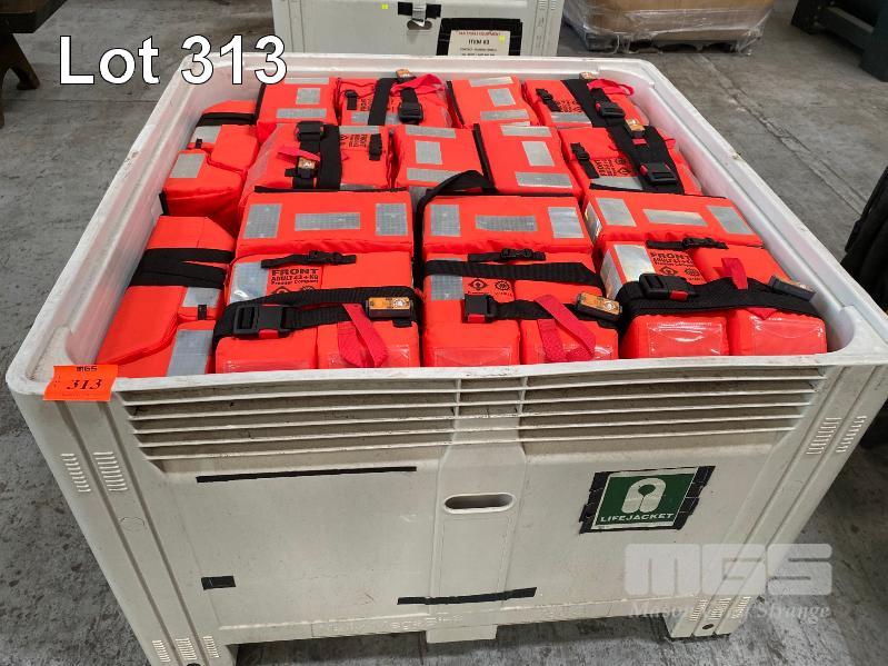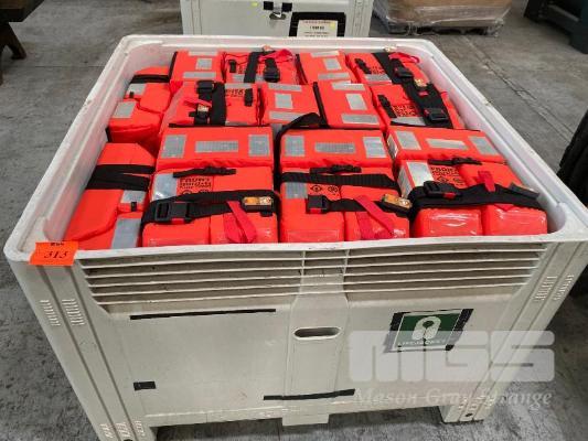 30 x LIFE JACKETS, CREW SAVER MOD: PREMIER COMPACT 0736/16 SUIT PERSON WEIGHT 43kg OR MORE WITH ILLUMINATED FLASHING BEACON LIGHT WATER OR SELF ACTIVATED HIGH VIS REFLECTIVE TAPE WITH NALLY MEGA BIN 1160 x 1160 x 780mm (H)
