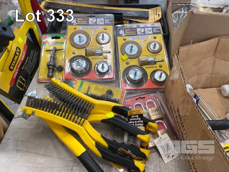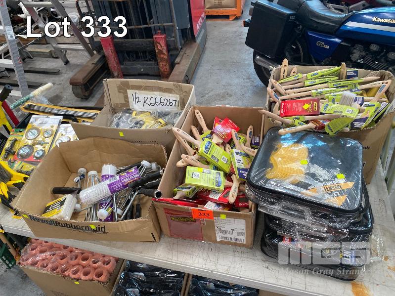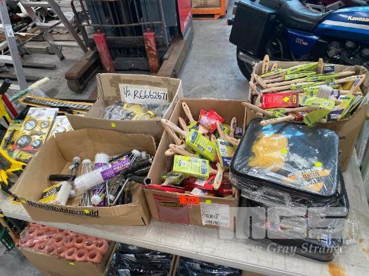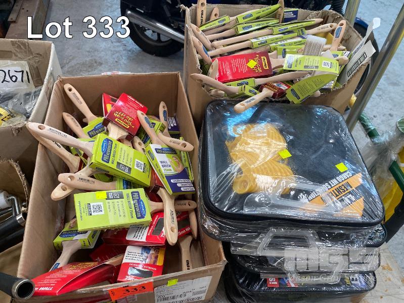 ASSORTED PAINT BRUSHES, WIRE WHEEL KITS, WIRE BRUSHES, ROLLERS & CAULKING GUNS, CARGO BARRIER NETS, ETC