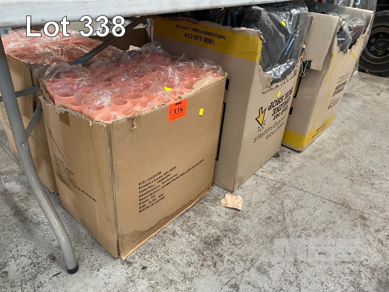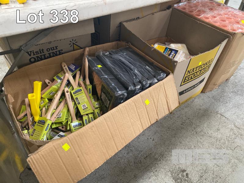 2 x BOXES PAINT ROLLERS & TRAYS, 2 x BOXES PAINT ROLLERS, 230mm, (96 per BOX), 2 x BOXES ASSORTED PAINT BRUSHES & MINI ROLLERS