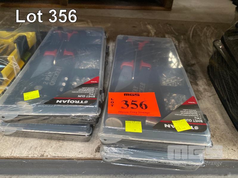 4 x DRILL BIT SETS, 4 x TROJAN RIVET GUN KITS & 3 x CARGO NETS