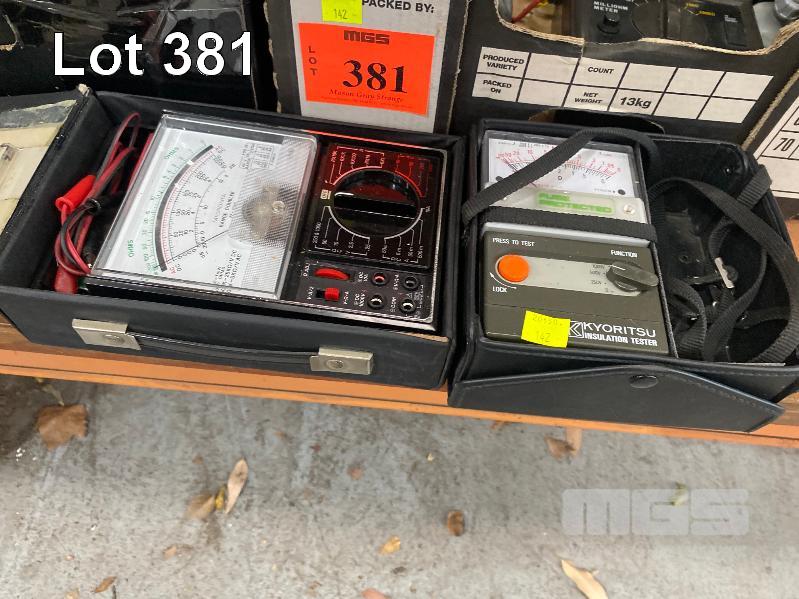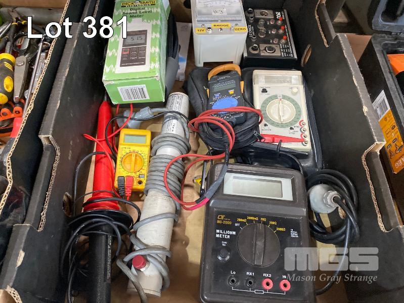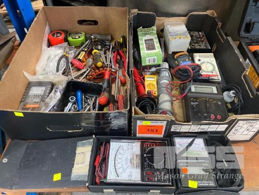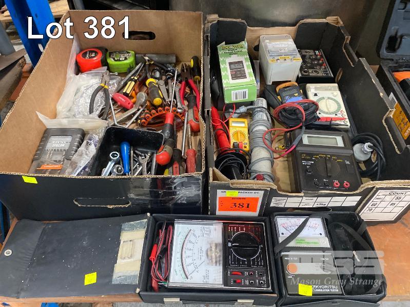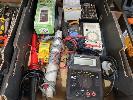 ASSORTED TEST EQUIPMENT & HAND TOOLS, COMPRISING DIGITAL CLAMP/VOLT METERS, SOUND LEVEL METER, KYORITS INSULATION TESTER, ETC