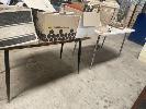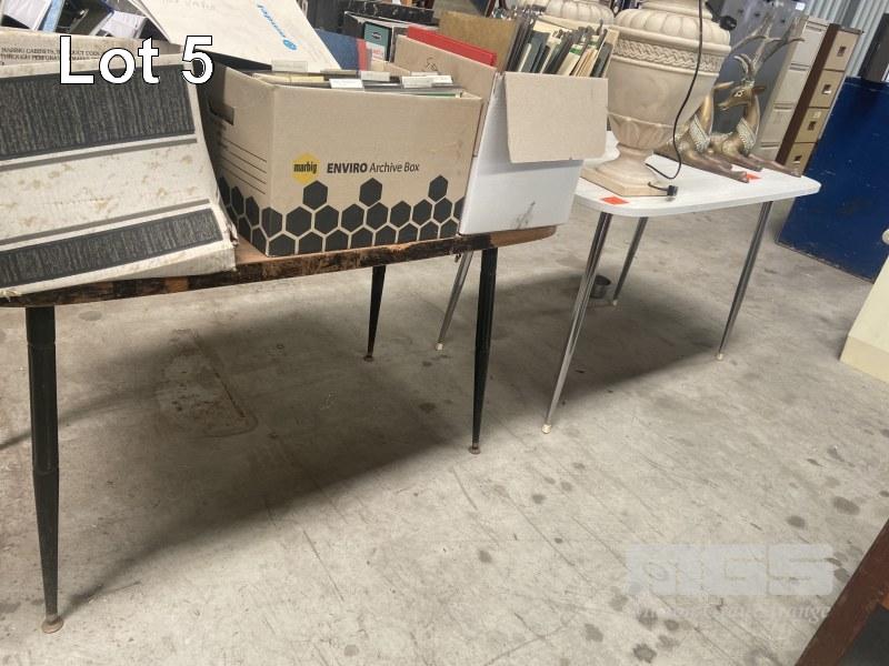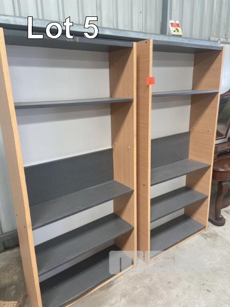 2 x BOOKSHELVES, TIMBER LAMINATE & 2 x TIMBER LAMINATE KITCHEN TABLES