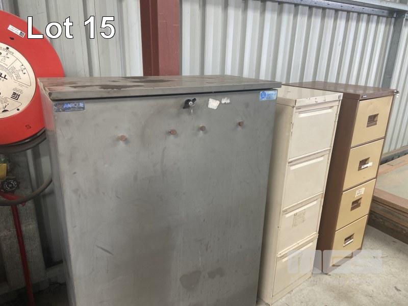 LOWLINE 2 DOOR STEEL CABINET, 900 x 50 x 1000mm, STEEL PLAN CUPBOARD & 2 x 4 DRAWER FILING CABINETS